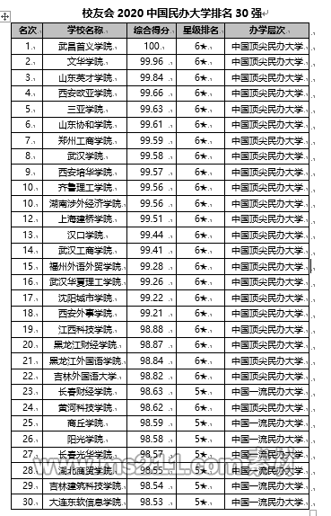 武昌首義學院問鼎2020中國民辦大學排名冠軍,三亞學院位列第5名