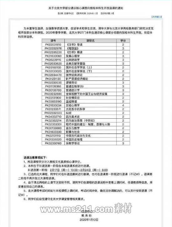 學(xué)生所選的北大課程學(xué)分計(jì)入學(xué)校文化素質(zhì)核心課學(xué)分。