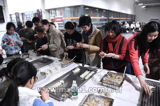 小年夜飯桌上的餃子是北師大學(xué)生親手包的。記者注意到,食堂的后廚人員幫助學(xué)生準(zhǔn)備好了食材,下午4:30分左右,有學(xué)生自發(fā)從觀眾席走向食堂后廚開(kāi)始包餃子。還有學(xué)生在現(xiàn)場(chǎng)開(kāi)展了包餃子教學(xué)。