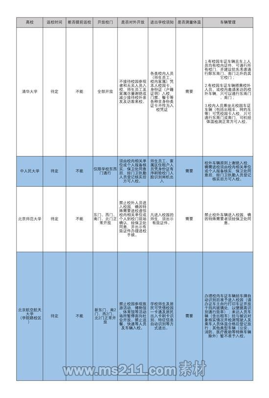 在校外人員進入校園方面,多數(shù)高校已禁止校外無關(guān)人員進入校園,來校辦公人員需向相關(guān)部門報備、登記,審批通過后方可進入校園。另外,北京航空航天大學(xué)(分?jǐn)?shù)線,專業(yè)設(shè)置)的通知中稱,學(xué)校博物館、體育館等活動場所暫停面向社會開放。
