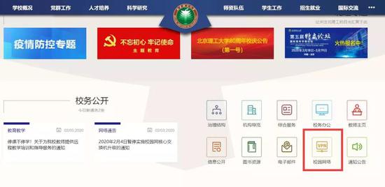 廣大師生可訪問網(wǎng)址:https://vpn.bit.edu.cn,或者在校園網(wǎng)首頁點(diǎn)擊“VPN登錄”圖標(biāo)。