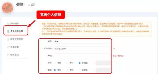 2、完善個(gè)人信息