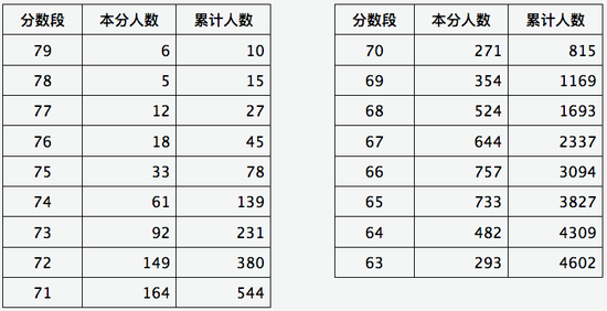 山西省2020年普通高考音樂(lè)統(tǒng)考分?jǐn)?shù)段統(tǒng)計(jì)表