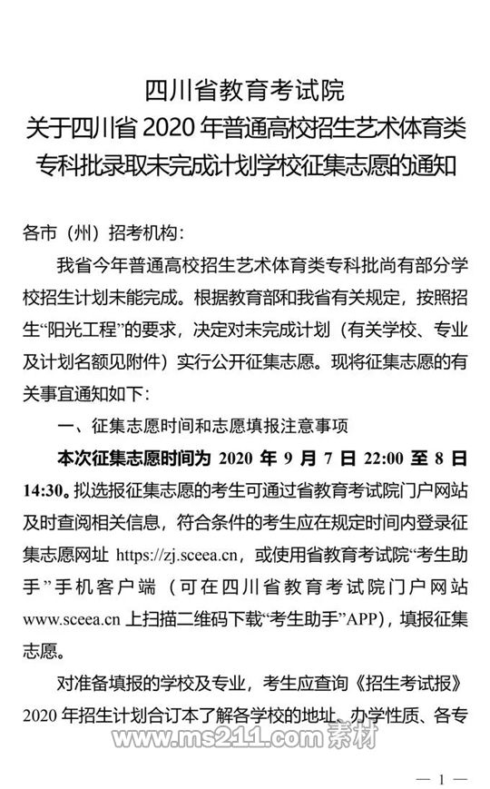 相關(guān)熱詞搜索:2020年關(guān)于四川省普通高校招生藝術(shù)體育類專科批錄取未完成計(jì)劃學(xué)校征集志愿的通知